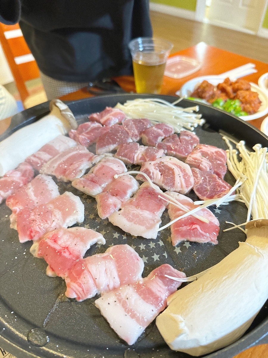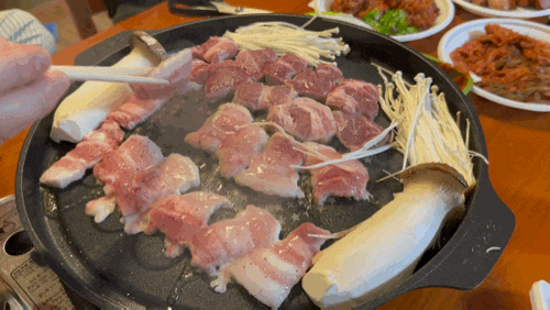 테이블 세팅이 끝나면 오늘의 주인공은 삼겹기