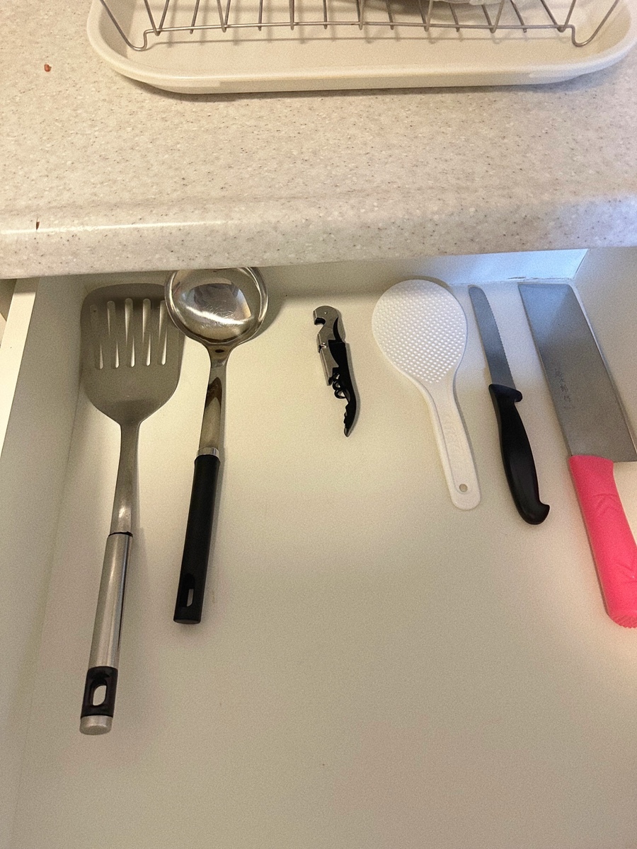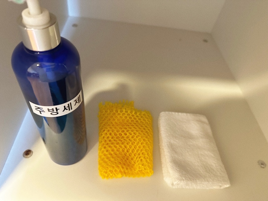 밥주걱, 국자, 칼, 수저, 젓가락, 주방세제가 있어요!