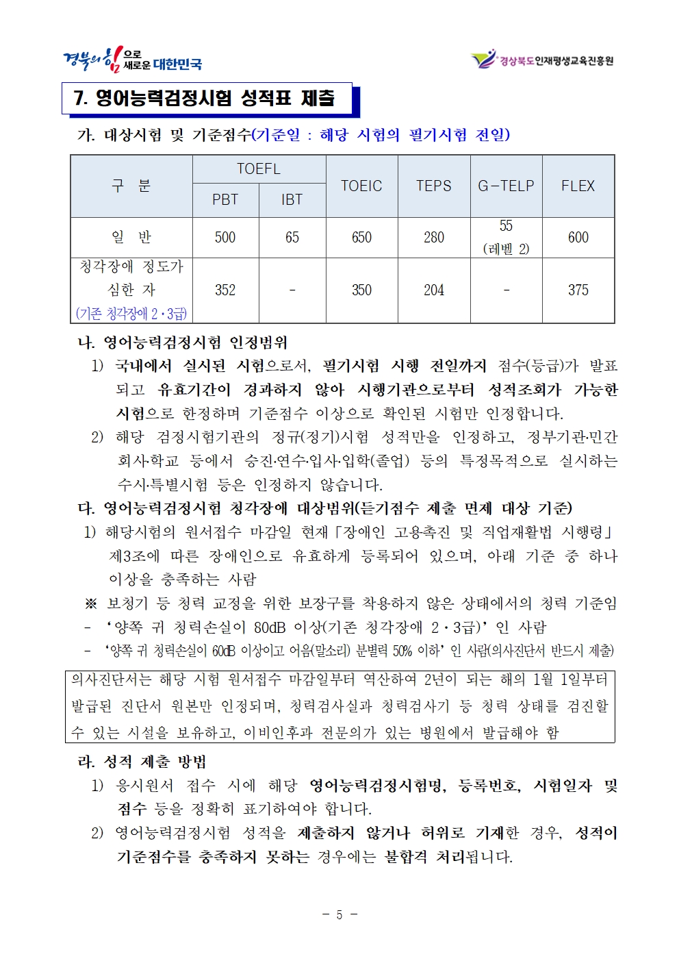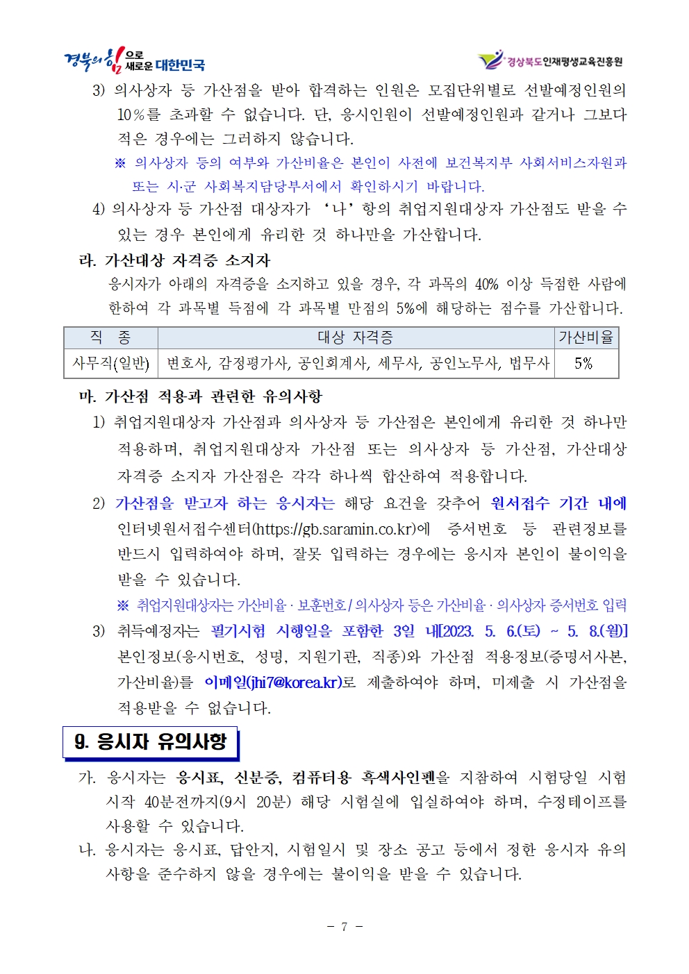 채용 테스트 요청 : 경상북도 인사채용팀(054-880-4584)