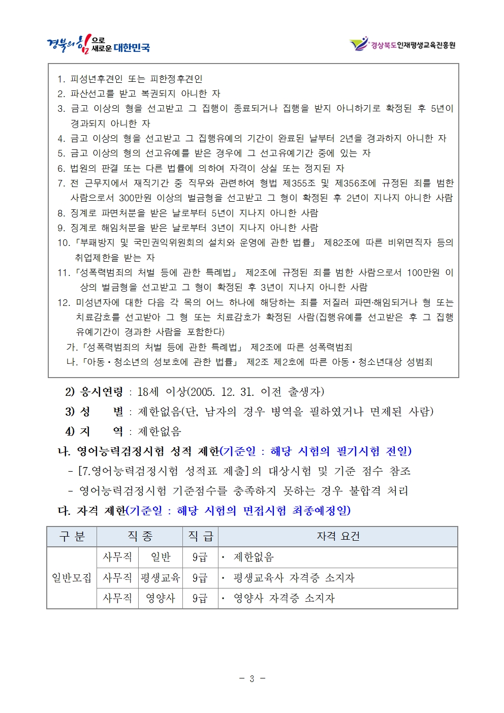 경상북도인재·평생교육진흥원과 함께 지역발전을 이끌어갈 인재를 아래와 같이 모집합니다..
